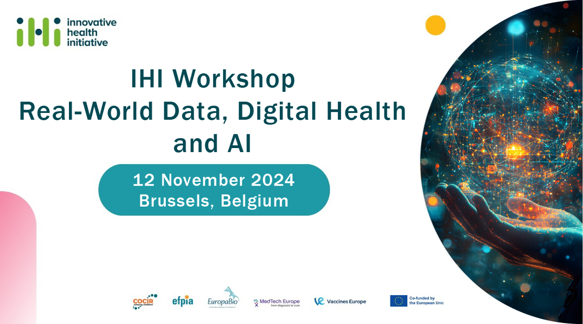 On 1–2 October 2024, the Innovative Health Initiative (IHI) organises a workshop to examine project outcomes, challenges and opportunities related to real-world data, digital health and artificial intelligence in Europe. Participants discussed how these opportunities and challenges could be addressed within the scope of future IHI public-private projects and how they connect to the emerging European Health Data Space (EHDS).