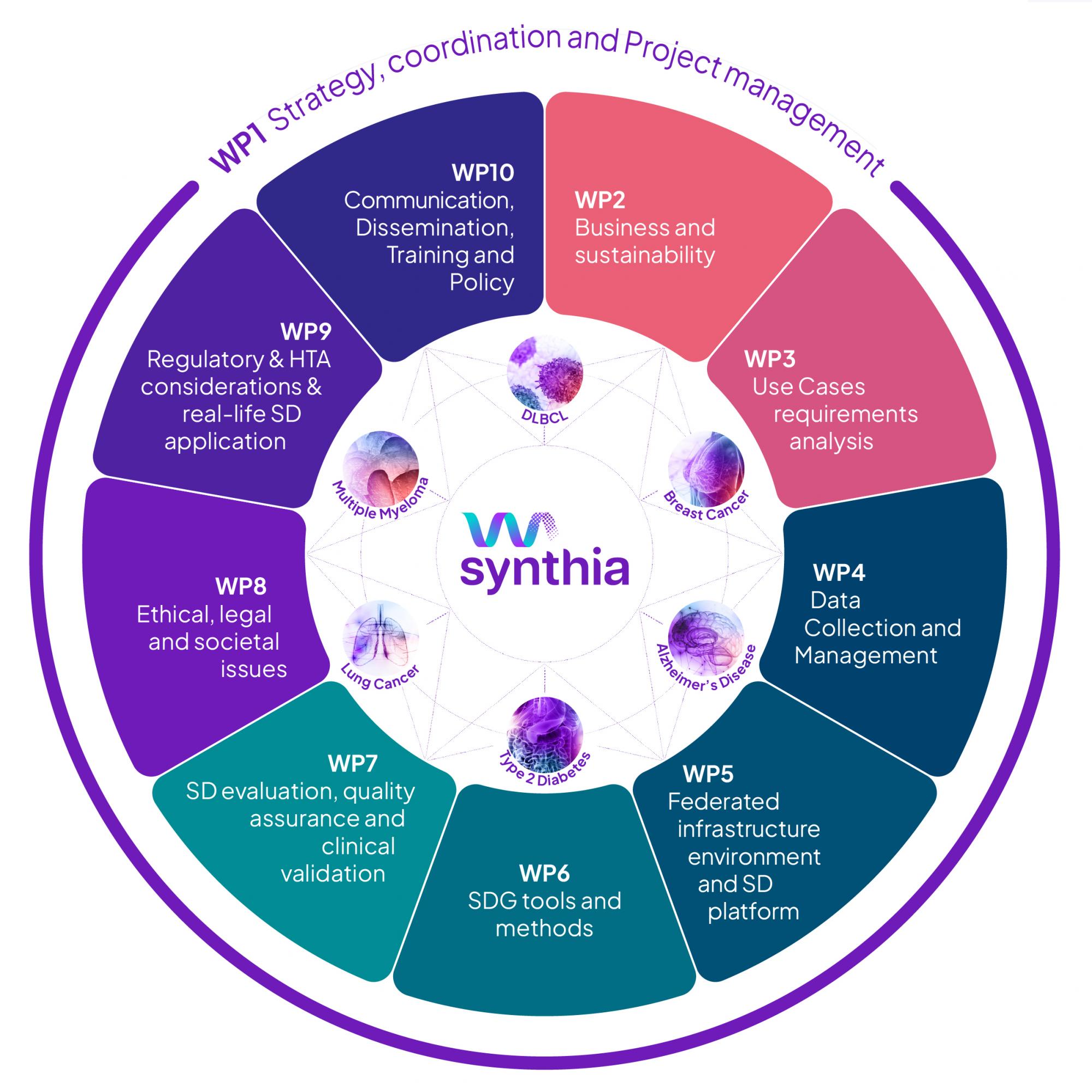 To navigate this complexity and ensure progress is strategic, transparent, and measurable, SYNTHIA is built around a series of interconnected Work Packages (WPs), each dedicated to a vital domain of the project, and grounded in six Use Cases (UCs) that represent real-world clinical challenges.