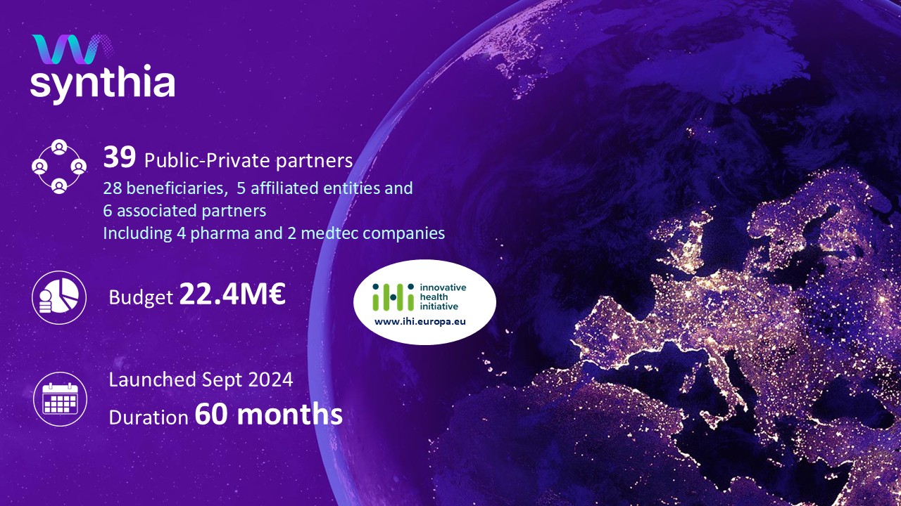 We are set to revolutionize the field of personalized medicine by harnessing the power of synthetic data (SD). As the first IHI (Innovative Healthcare Initiative) Synthetic Data project to tackle the critical need for privacy - preserving data solutions in healthcare, SYNTHIA aims to propel research and innovation to new heights, ensuring that patients receive the best possible care while safeguarding their personal information. SYNTHIA was launched in September 2024. Check-out our One-pager >